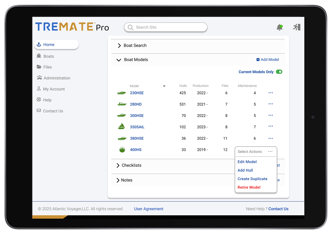 TreMate Pro is a ready-to-use product that companies can adopt very quickly. We also offer consulting service to configure your portal, create guidelines, and train staff. Outsourcing this task retains your focus on building boats, while we manage the technical aspect of creating your content and make it available to your customers. We offer a complementary demo and consultation, and a quick starter package that will work for most companies.